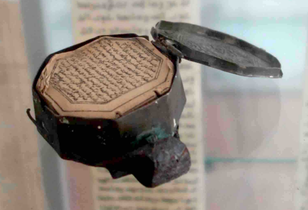 Metallkapsel enthaltene Miniaturkoran mit Gebeten schützen vor dem bösen Blick